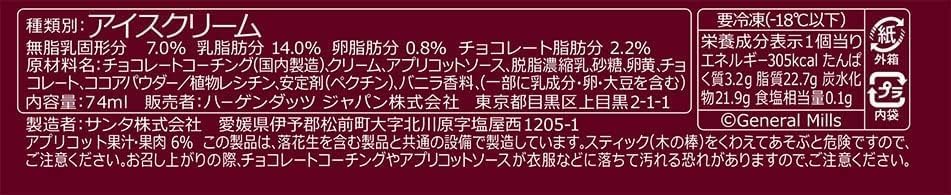 商品の説明 【濃厚な味わいのチョコレートと甘酸っぱいアプリコットが奏でるザッハトルテの味わい】濃厚でビターな味わいのチョコレートアイスクリームを、外側は柔らかく、内側はパリパリの食感が楽しめる2種類のチョコレートコーティングで包みました。チョコレートコーティングの間からは、甘酸っぱいアプリコットソースがとろりとあふれ出します。オーストリアの伝統的なチョコレートケーキ「ザッハトルテ」を食感豊かなアイスクリームバーでお楽しみください。 原材料・成分 チョコレートコーチング(国内製造)、クリーム、アプリコットソース、脱脂濃縮乳、砂糖、卵黄、チョコレート、ココアパウダー/植物レシチン、安定剤(ペクチン)、バニラ香料、(一部に乳成分・卵・大豆を含む)