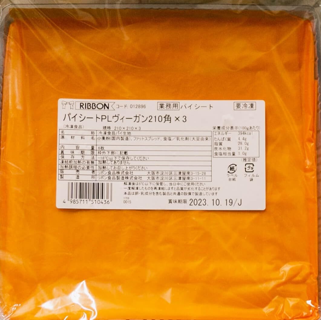 商品の説明 プロのベーカリーやご家庭での本格的なパイ作りに最適なヴィーガン対応パイシートです。1パックに21cm角のシートが3枚入っており、48個セットでお届けします。使いやすい正方形のサイズで、さまざまなパイやペイストリーの作成に便利です。冷凍保存が可能で、必要な分だけ解凍して使用できる実用的な商品です。サクサクとした食感を実現できる生地で、アップルパイやキッシュなど、多彩なレシピに対応します。プロ仕様の品質でありながら、ご家庭でも扱いやすい使い勝手の良さが特徴です。パイ作りの手間を大幅に削減しながら、本格的な味と食感を実現できます。業務用にも最適な大容量パックで、イベントやパーティーの準備にも重宝します。
