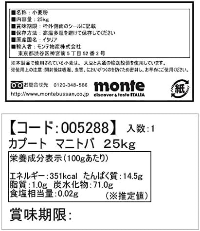 商品の説明 イタリア・ナポリの老舗製粉メーカー カプート(Caputo) が誇る「マニトバ TIPO 0」は、グルテンが強く吸水性・発酵耐性に優れた最高級強力粉です。 カナダ産マニトバ小麦を使用し、ふんわりとした膨らみとしなやかな弾力を持つ生地に仕上がります。長時間発酵にも強く、安定した焼き上がりが特徴です。 原材料・成分 小麦 (※アレルゲン:小麦を含む)