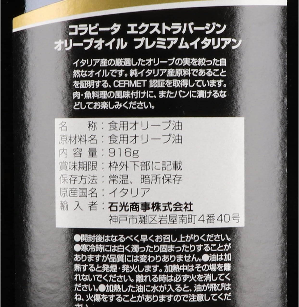 プレミアムイタリア エキストラバージンオリーブオイル 1L こらびーた