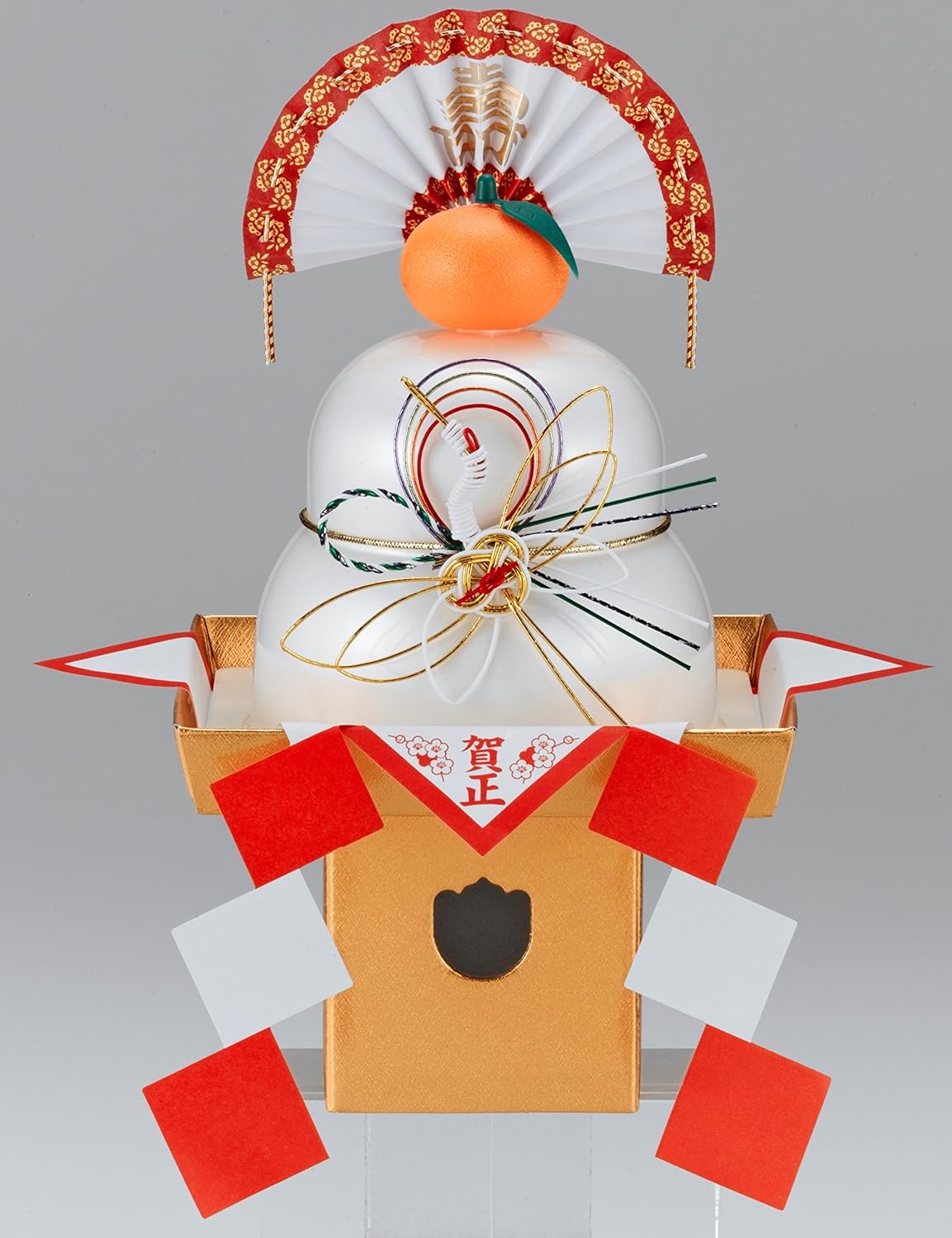 箱から出して、橙と扇を付けたらすぐに完成組み立て式のため、手間いらず。誰でも簡単にキレイに飾れます。中に、無菌パックされたまる餅が入っています。標準サイズより少ししいさめの鏡餅です。栄養成分[栄養成分表33g当り]エネルギー80kcal、たんぱく質1.5g、脂質0.3g、炭水化物18.0g、ナトリウム1mg未満