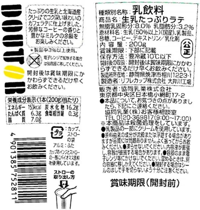 協同乳業 ドトール生乳たっぷりラテ 200g