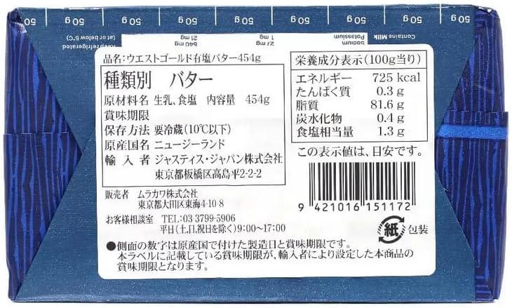 ウエストゴールド ニュージランド産 グラスフェットバター有塩 454g