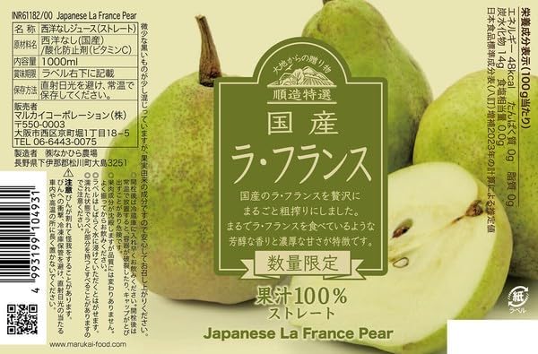 商品の説明 順造特選の「ラ・フランス100」は、厳選された国産ラ・フランスを贅沢に使用した1000mlの果汁100%ジュースです。洋梨の女王と呼ばれるラ・フランスの芳醇な香りと、みずみずしい甘さを存分に引き出しました。まるで新鮮な果実をそのまま飲んでいるかのような味わいが特徴です。すっきりとした飲み口でありながら、ラ・フランス本来の濃厚な風味を楽しむことができます。食後のデザートドリンクとしてはもちろん、朝食やティータイムにも最適です。冷やして飲むと、より一層爽やかな美味しさを感じられます。大容量の1000mlボトルは、ご家族でゆっくりと楽しめる使いやすいサイズです。 原材料・成分 ラフランス