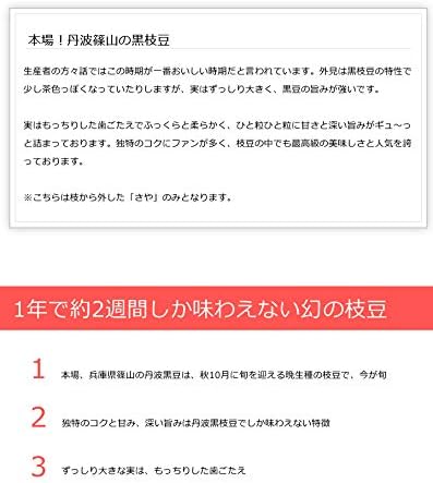 商品情報 名称丹波篠山の黒枝豆 産地名兵庫県産 内容量約1kg 保存方法冷暗所・冷蔵庫にて新鮮なうちにお召し上がりください。