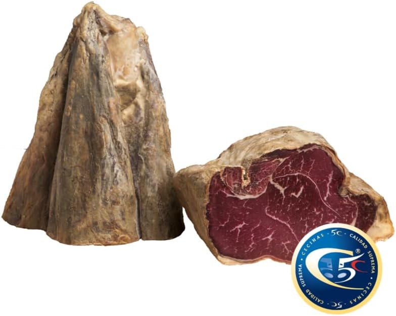 商品の説明 スペインの伝統的な乾燥肉、セシーナ・デ・レオンIGPをご紹介します。名門ニエト社が丁寧に作り上げた約3kgのカデラ(ランプ)は、伝統的な製法で仕上げられた逸品です。レオン地方の気候と職人の技が織りなす独特の風味と食感をお楽しみいただけます。セシーナは牛肉の生ハムとも呼ばれ、スペイン食文化を代表する珍味の一つです。薄くスライスしてそのままアペリティーボとして、またパンやワインと共に味わうのがおすすめです。深い赤褐色と程よい塩味、長期熟成による複雑な旨味が特徴的な逸品です。約3kgのホールサイズなので、レストランやバルでの業務用としても最適です。