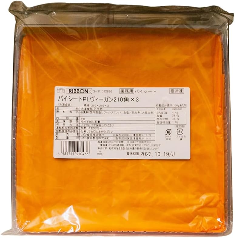 【業務用】リボン食品 パイシートPL ヴィーガン認証付き 210角 6枚 動物性由来原料不使用