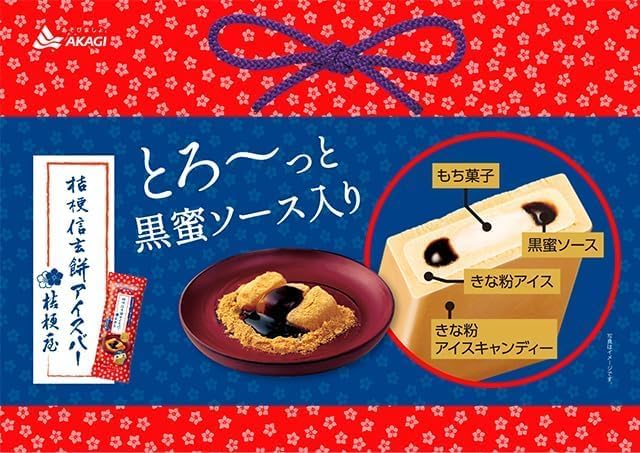 商品の説明 きな粉味のアイスキャンディーの中に、もち菓子、黒蜜ソース、きな粉アイスが入っています。インパクト抜群のもち菓子と黒蜜ソースが食べ始めから味わえる仕様で、香ばしいきな粉アイスとの組み合わせをお楽しみいただけます。 原材料・成分 乳製品(国内製造)、砂糖、もち菓子(水あめ、還元水あめ、もち粉、マルトース)、黒蜜ソース、きな粉/安定剤(加工デンプン、増粘多糖類)、着色料(カラメル)、香料、乳化剤、(一部に乳成分・大豆を含む)